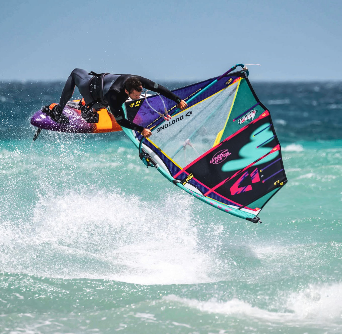 Perfect conditions to test the new Duotone Idol 3.2 Freestyle Prototype – and it truly impressed me even with my mid size Freestyle Boardd (88l). The board and sail combination worked incredibly well in those hardcore conditions. Ducks were surprisingly controllable, the pop felt clean and explosive, and even in the strongest gusts, the setup stayed balanced. A 340 mast turned out to be essential for getting the perfect feel and reactivity.